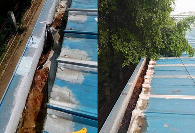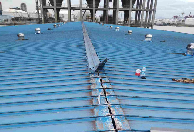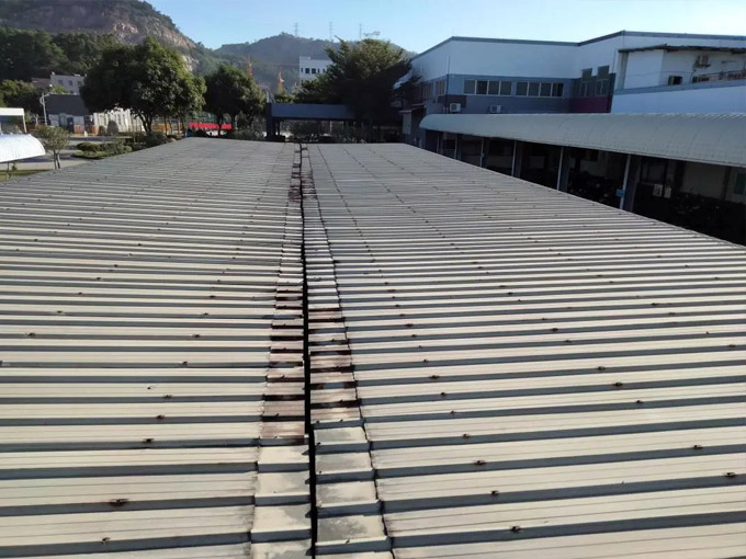 清理天沟,保证屋面排水通畅,如锈蚀损坏严重,可整体更换。