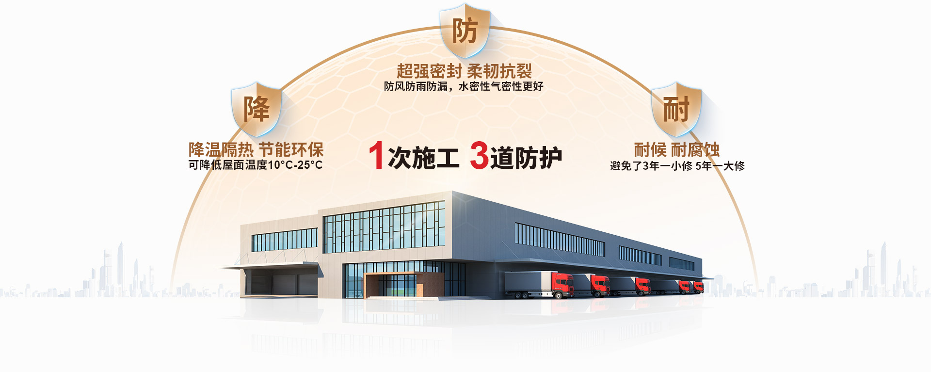 传统材料难以与基面持久粘结,容易出现分层,金属屋面容易出现积水更易锈蚀