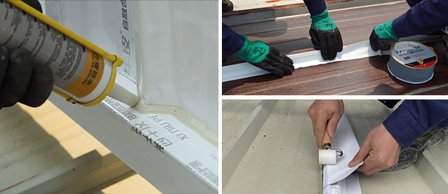 用西牛皮自融合型特种防护膜配套节点密封胶及节点密封胶带进行节点密封。