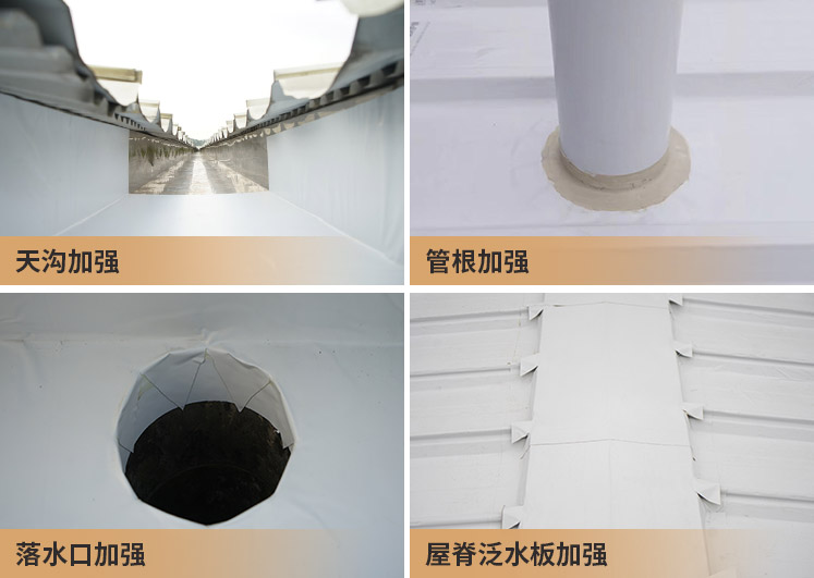 必要时,先对屋脊泛水板、瓦搭接缝、檐口、天沟、风机底座、采光带等细部节点加强处理。