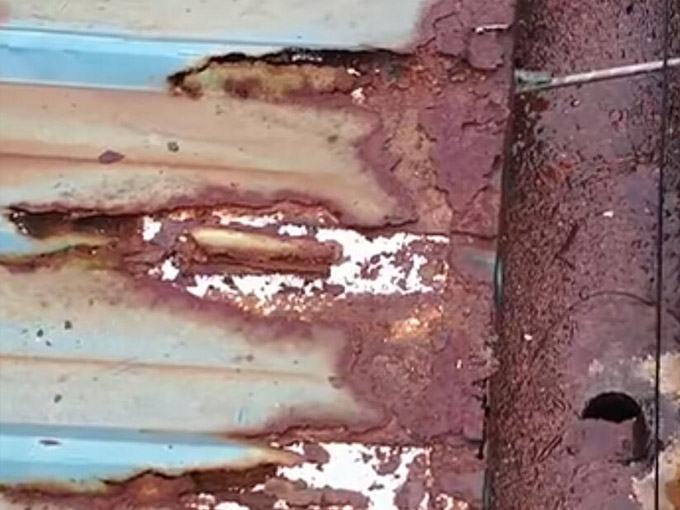 - 已经形成整面锈蚀,局部穿孔:面板强度大大降低